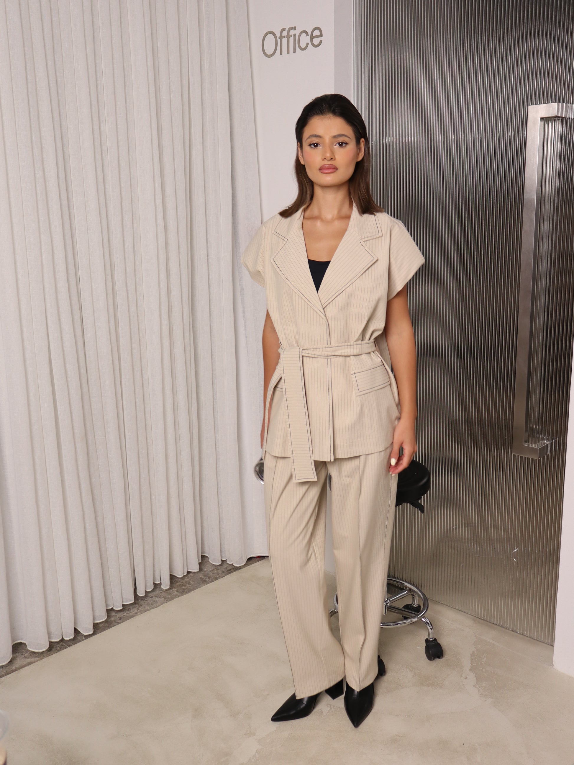 Elegant cape-style suit designed for a modern office look. Light, structured, and versatile for day-to-night wear